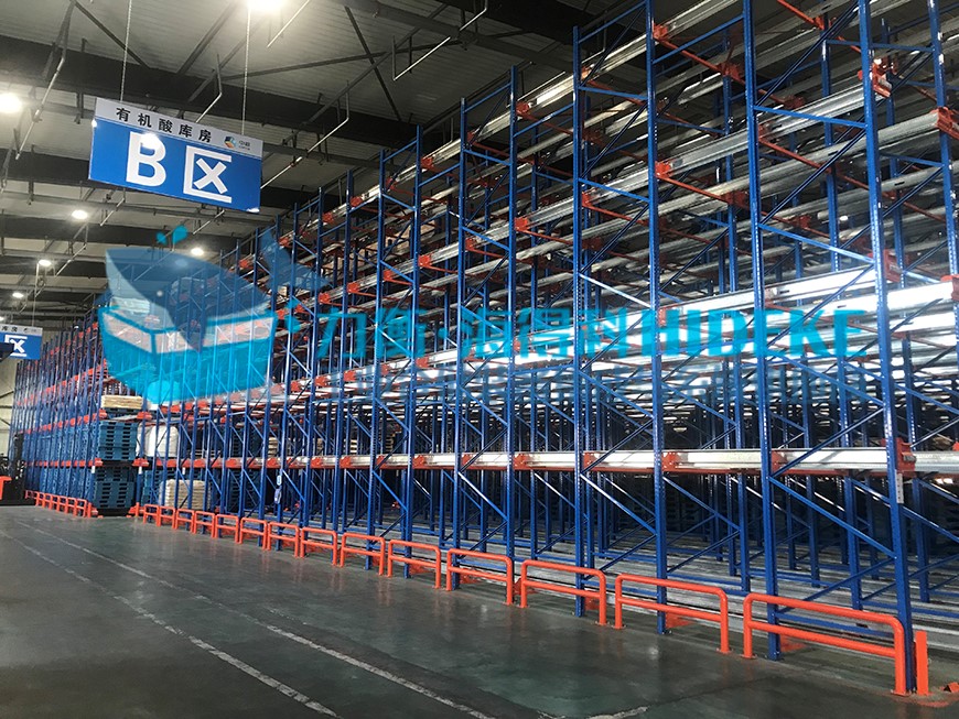國有大型中糧生化,庫房放置有機(jī)物料,因此次客戶存放產(chǎn)品均屬于少樣多量的特性,且客戶對存儲(chǔ)利用率要求極高,我們?yōu)榭蛻舳紤]采用穿梭式密集存儲(chǔ)貨架,并為其配套南京力恒自主研發(fā)定制的配套穿梭臺(tái)車;